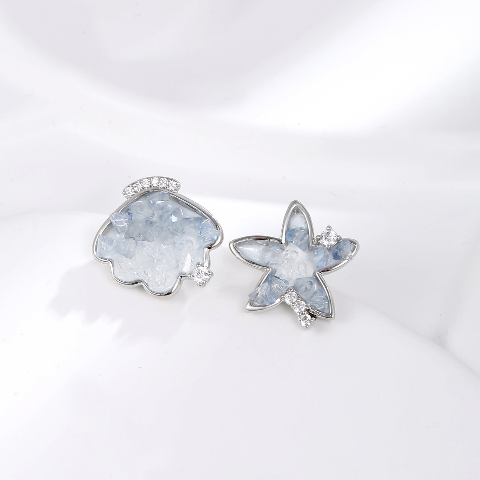 G&R Blue and White Gradient Color Crystal Star Shell Stud Earrings925Silver