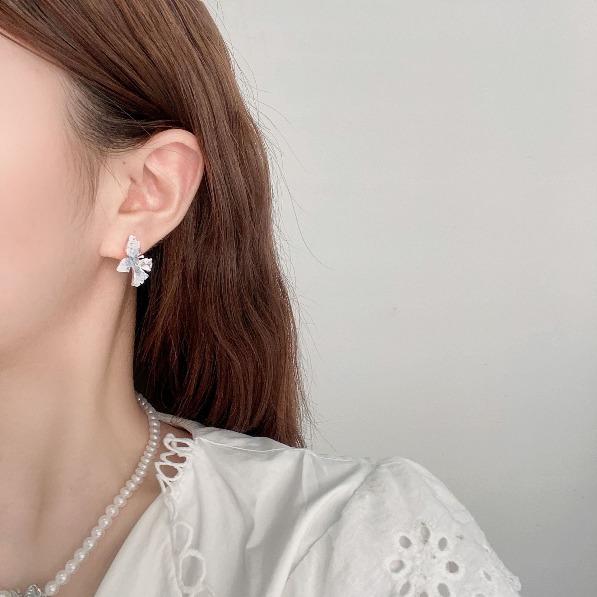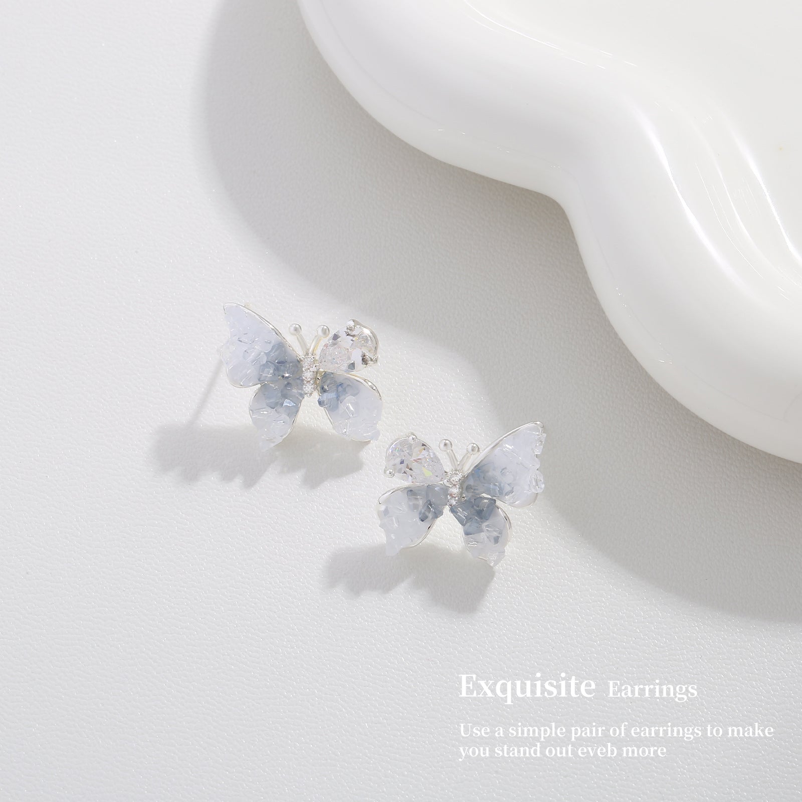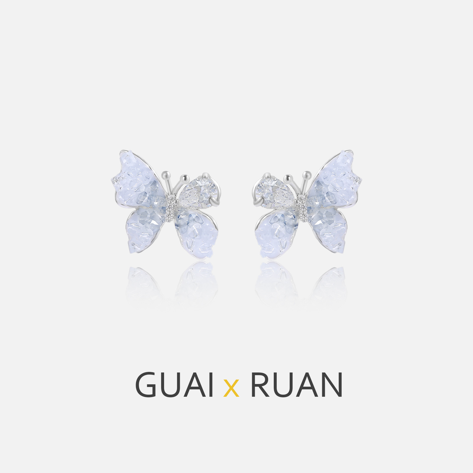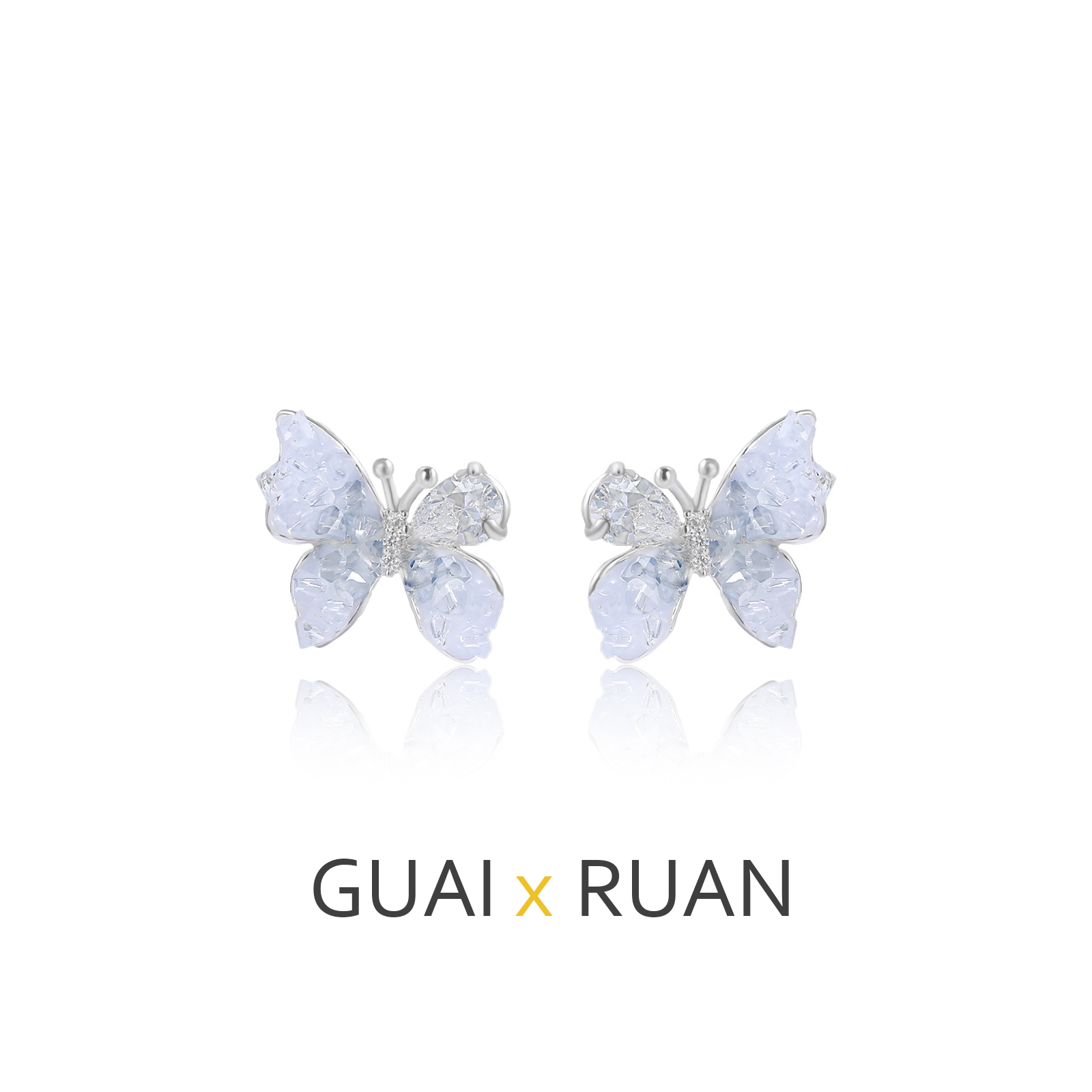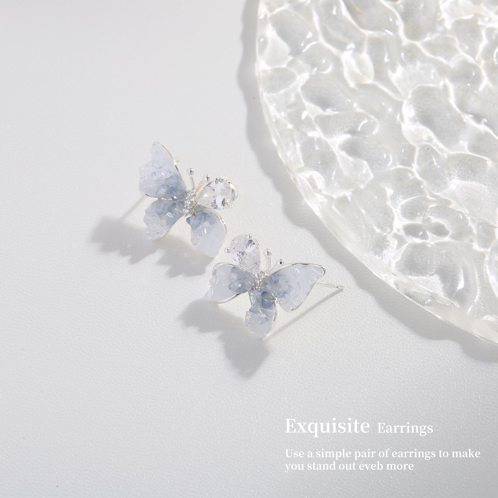 G&R Blue Crystal Stud Earrings925Silver Needle Butterfly Earrings