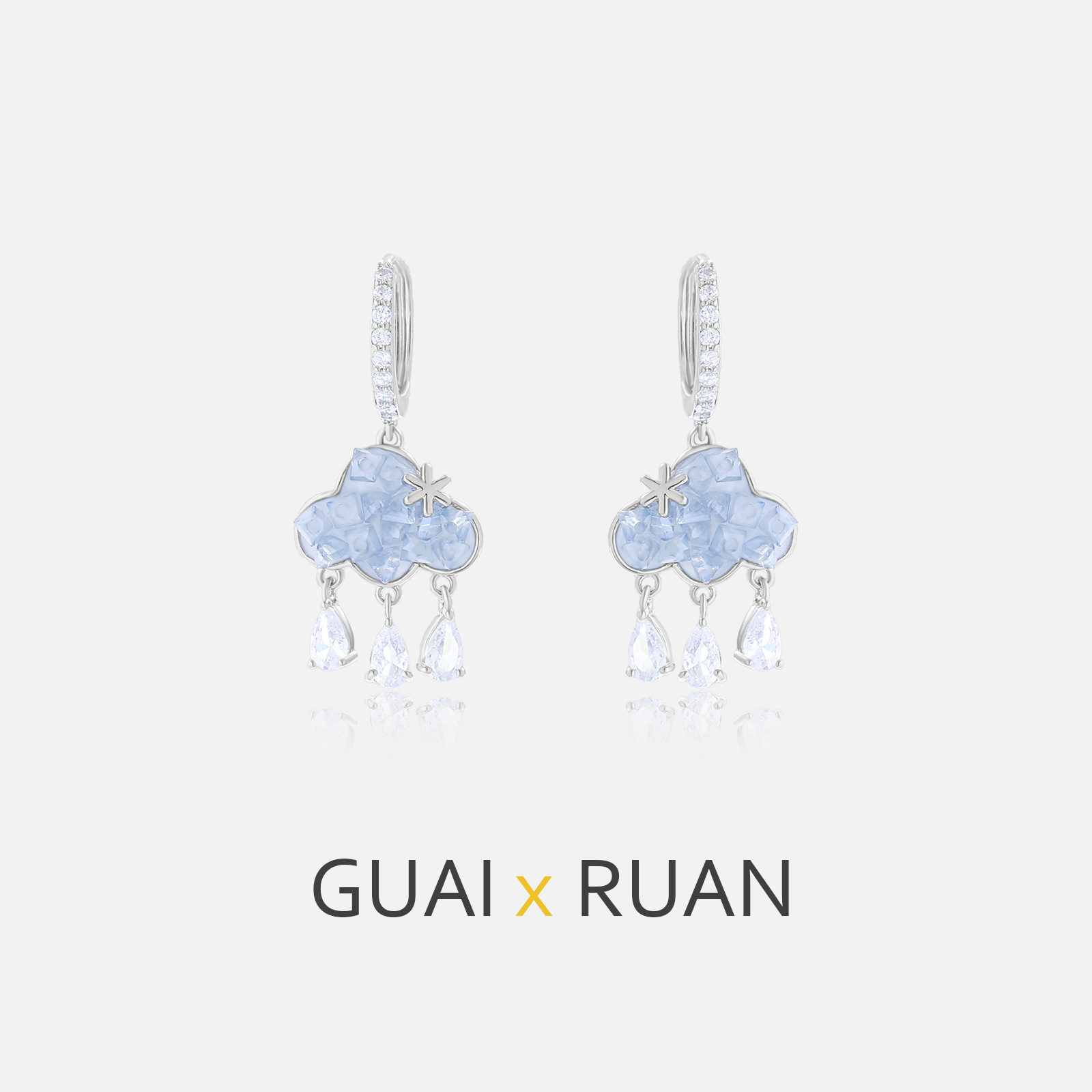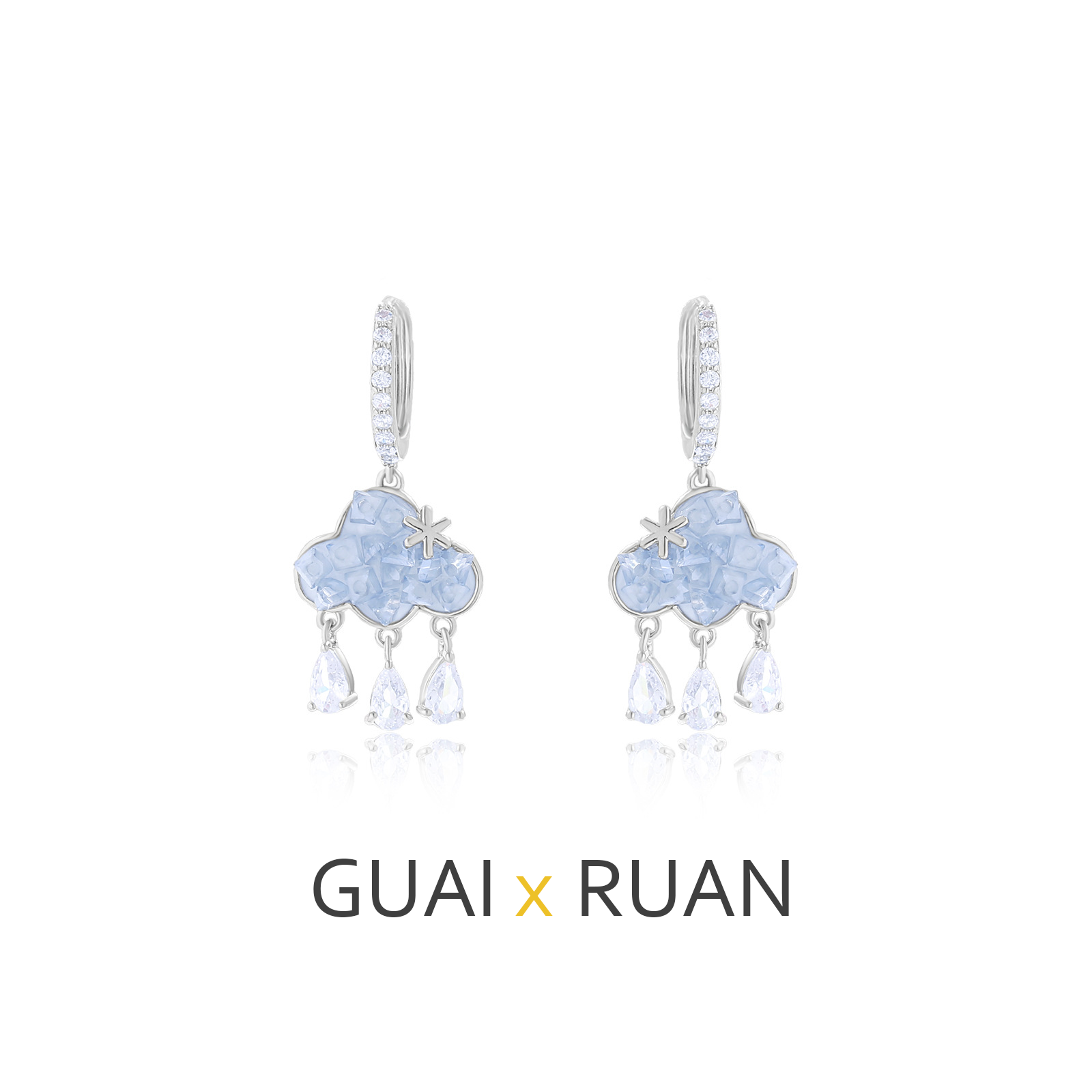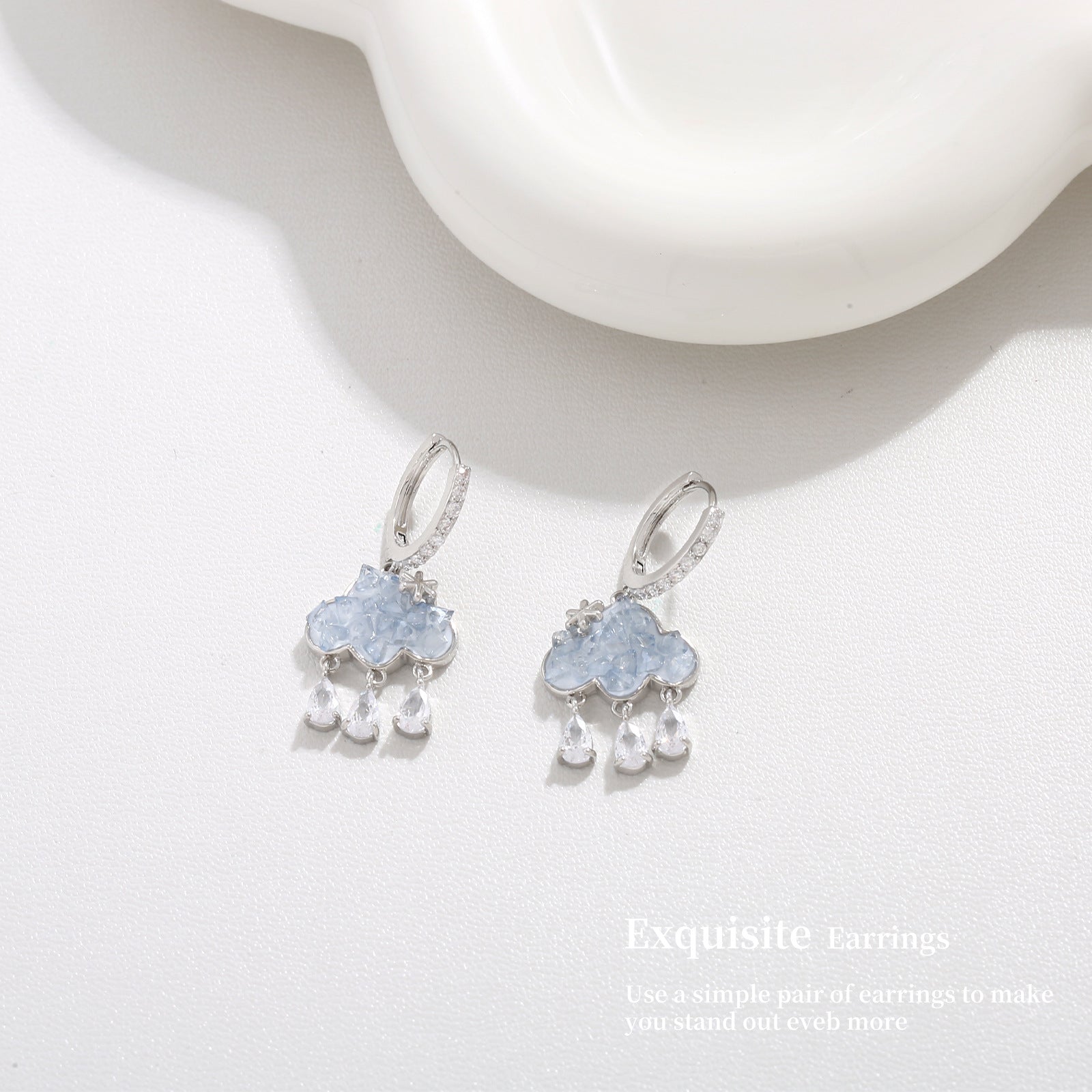 G&R Cloud Raindrop Tassel Earrings925Silver Blue Crystal Earrings