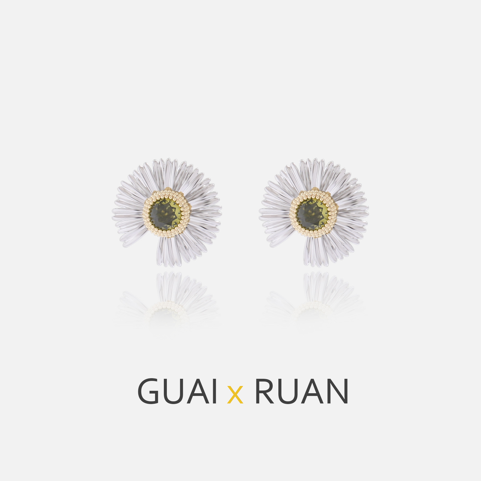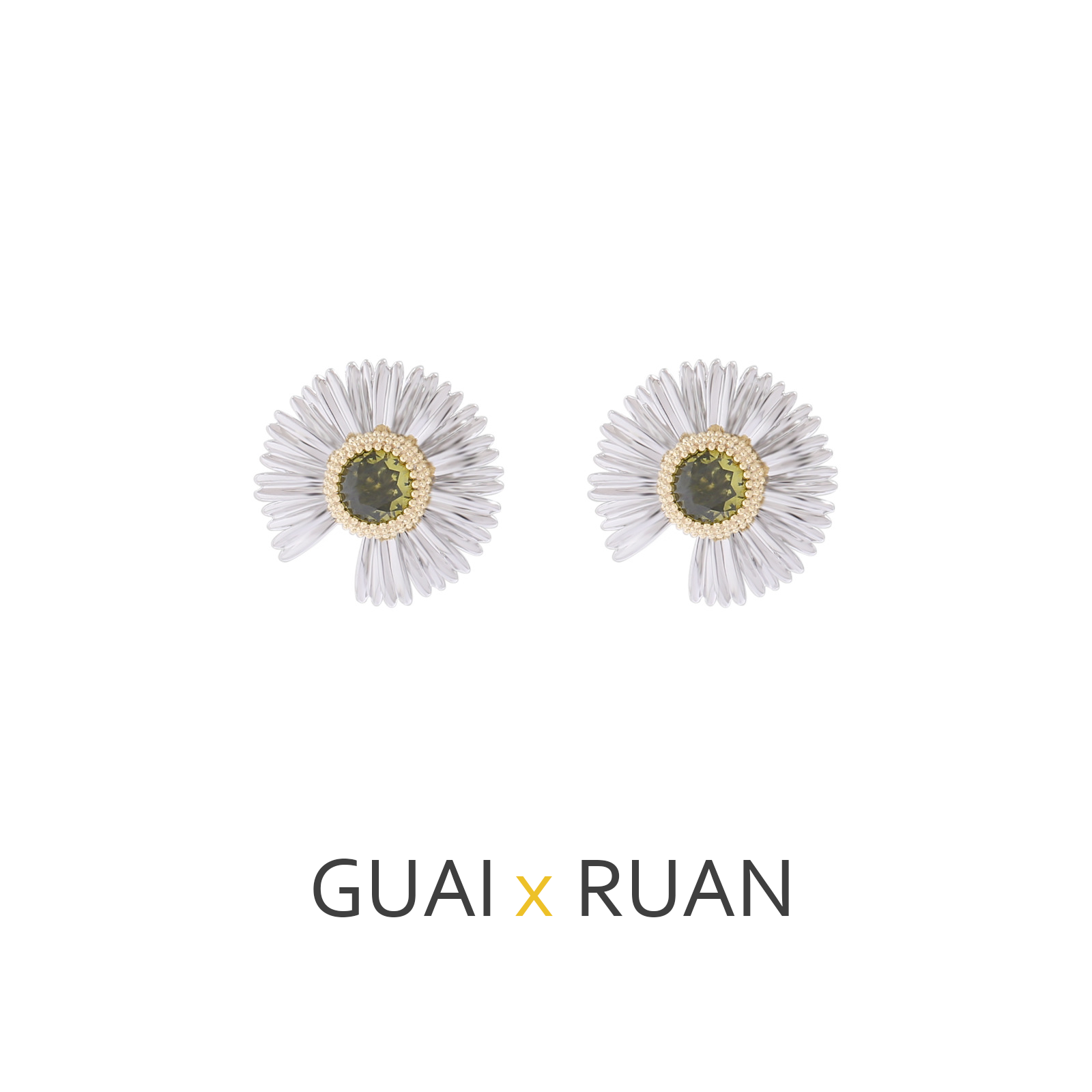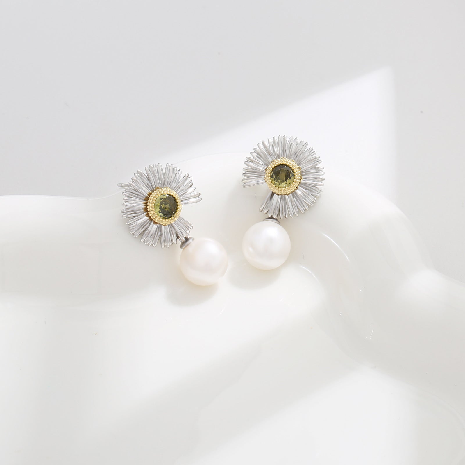 G&R Daisy Sterling Silver Earrings Olive Green Zircon Earrings 925