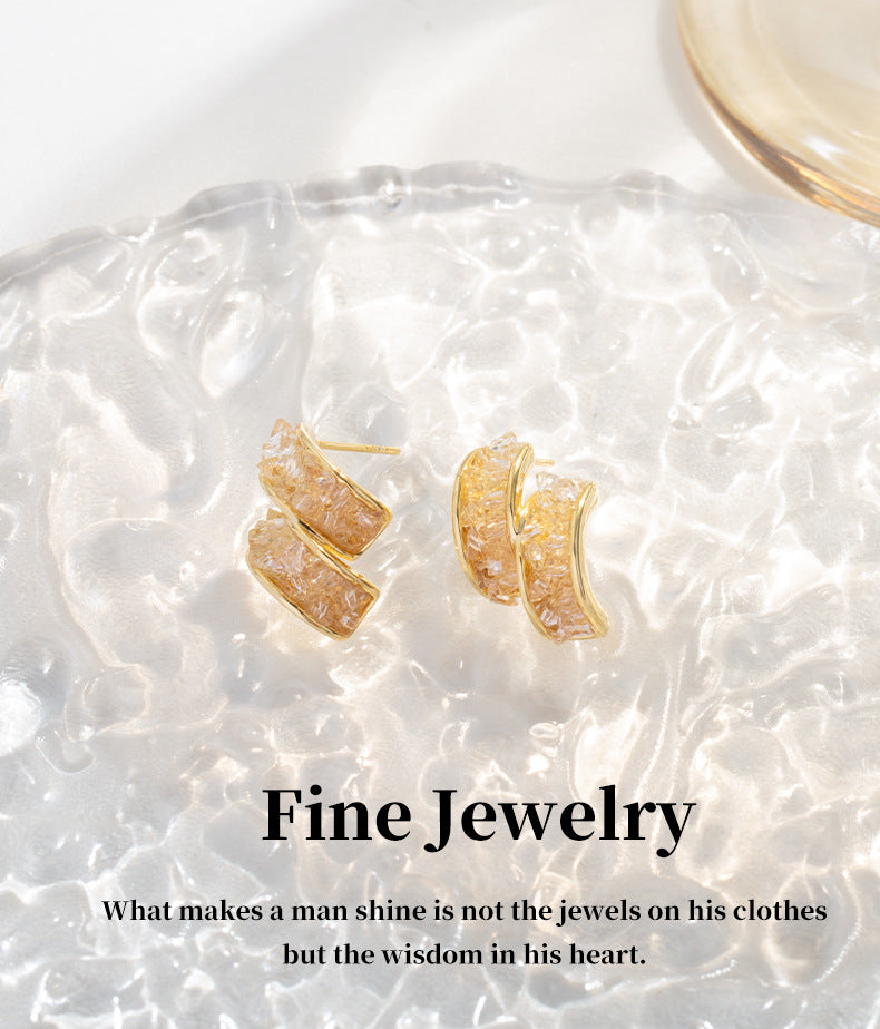 G&R Double Layer Design Earrings 925 Silver Niche Light Luxury Crystal Earrings