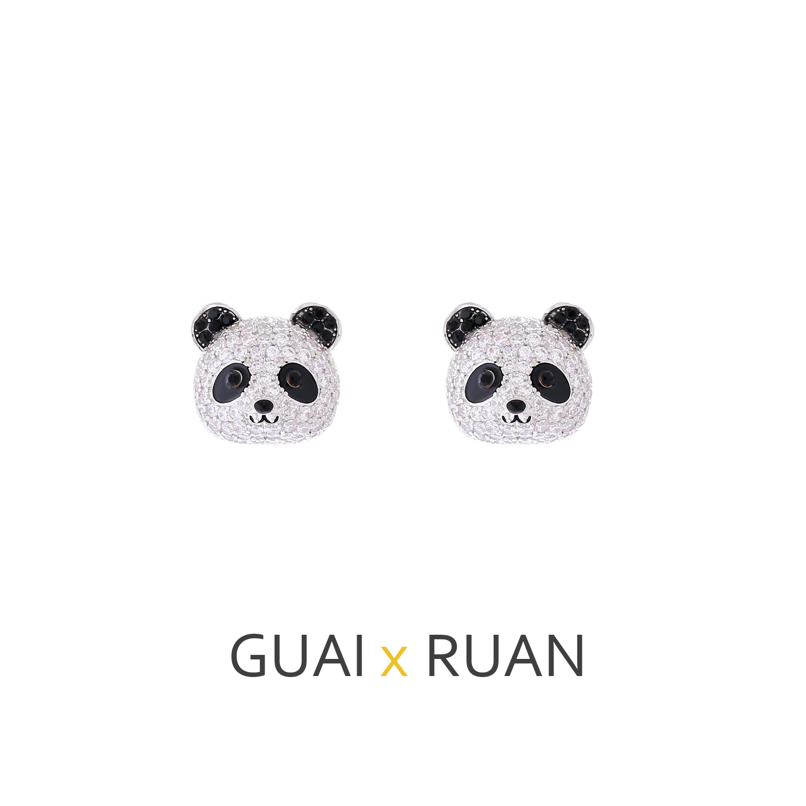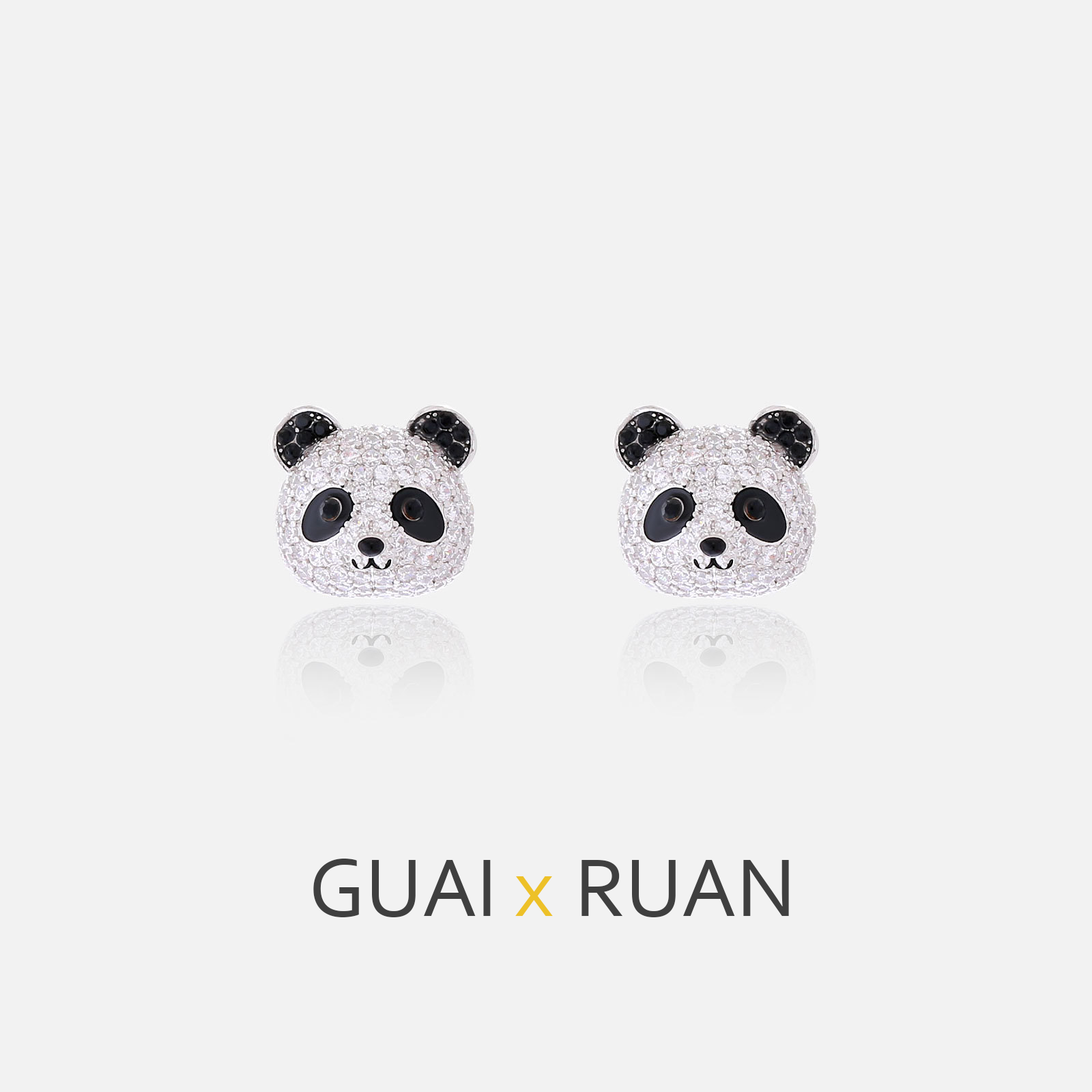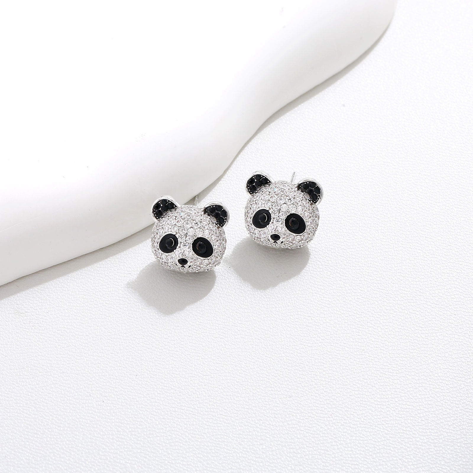 G&R Exquisite 3D Cute Panda925Silver Stud Earrings for Women