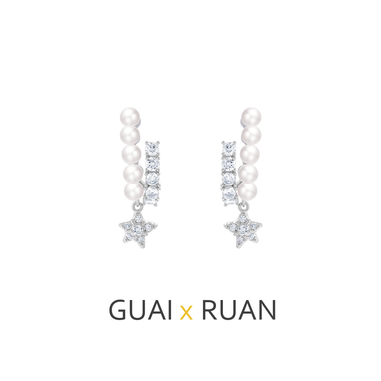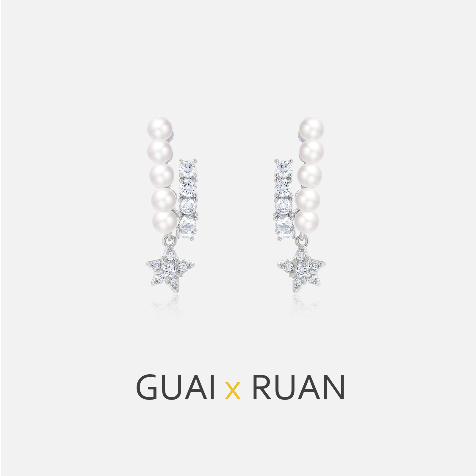 G&R Five-Pointed Star Earrings Silver Needle Pearl Zircon Earrings Light Luxury High-End Feel Women 925 Silver