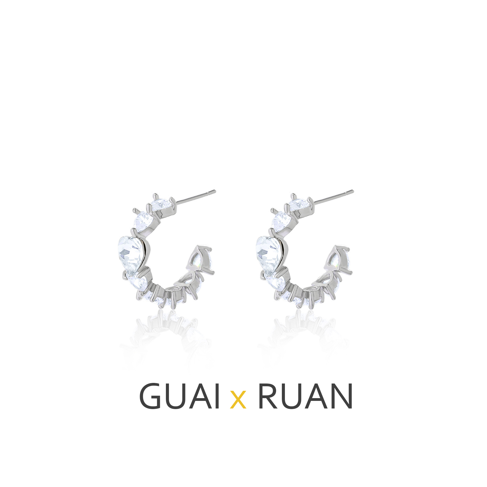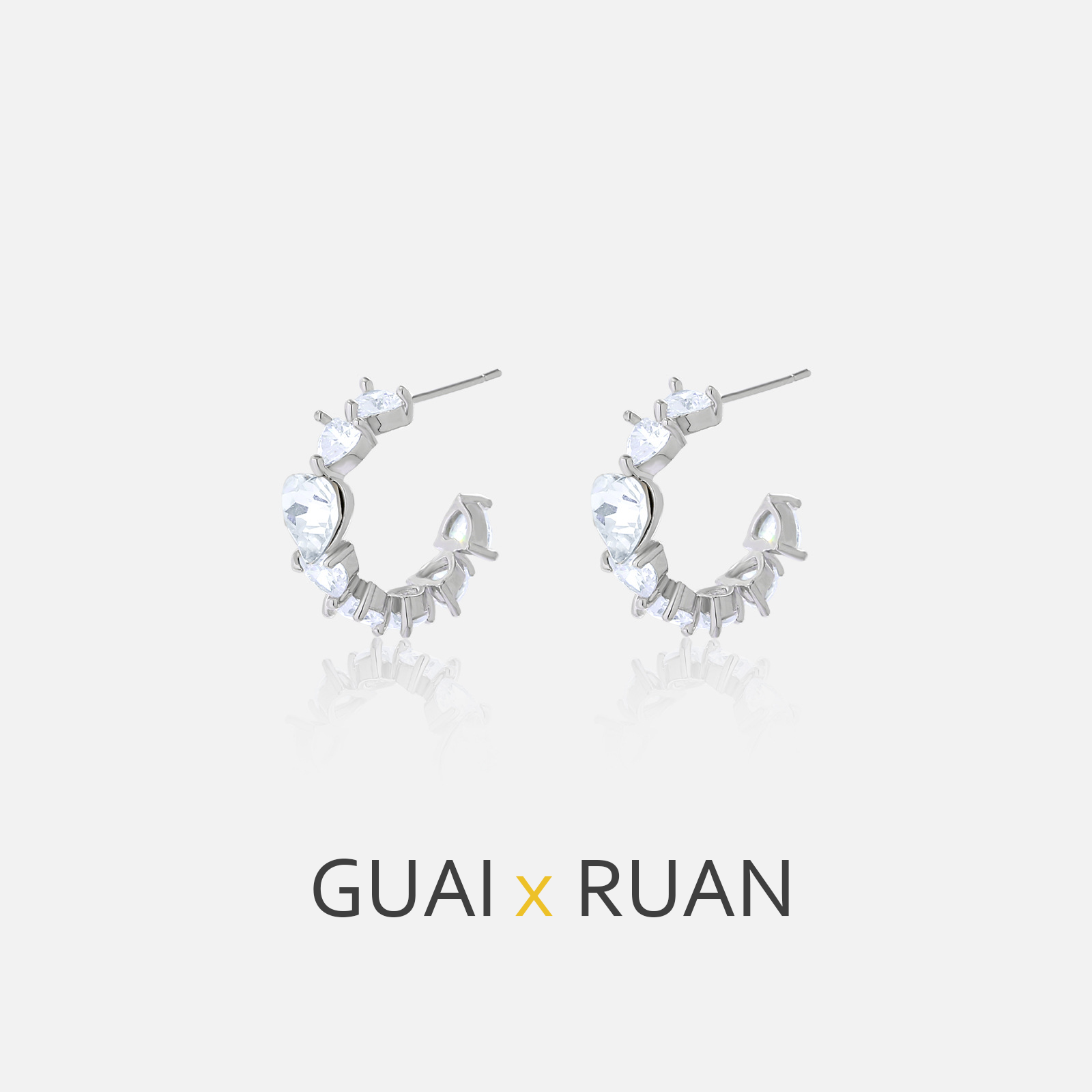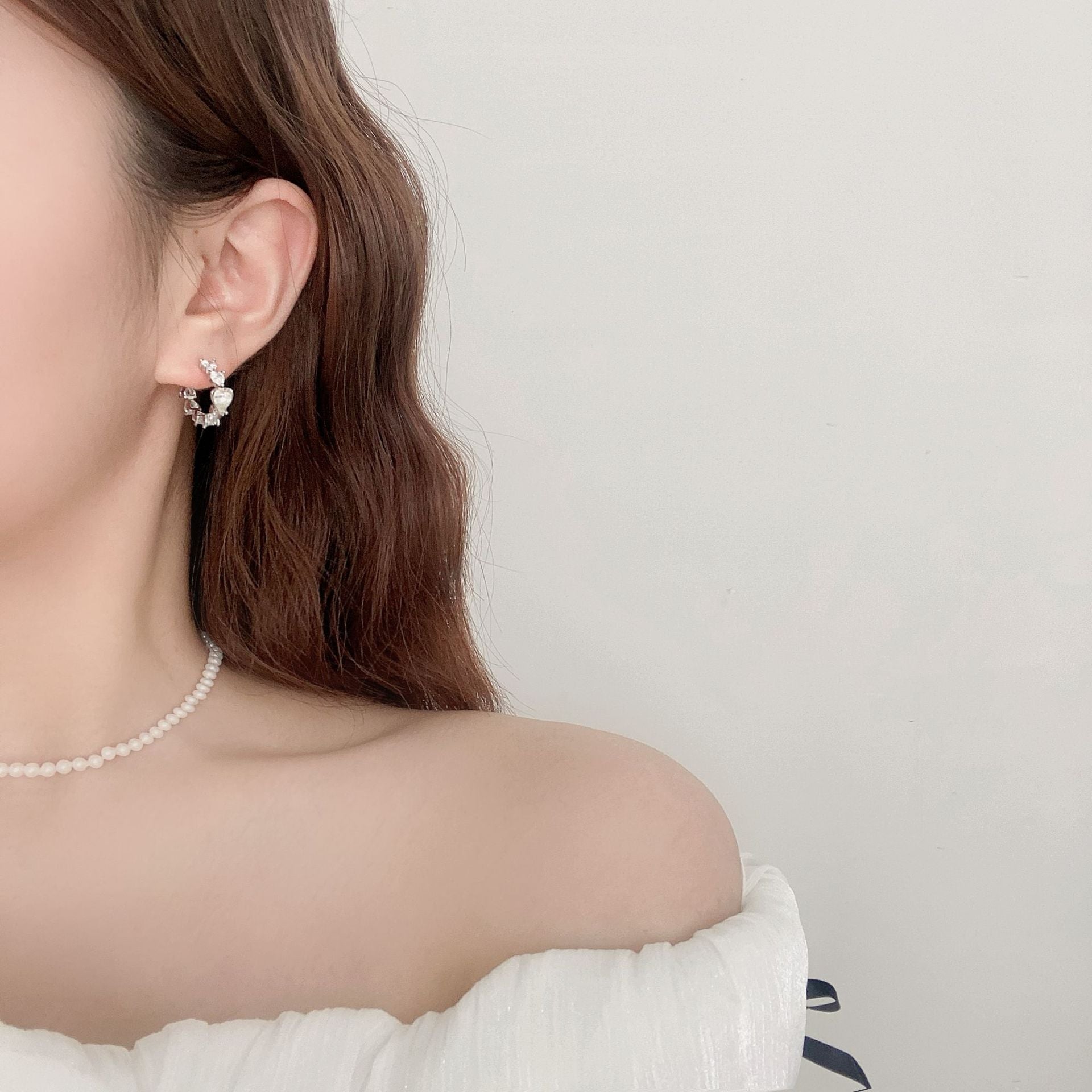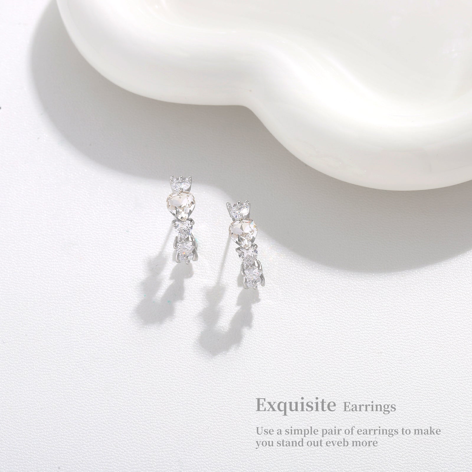 G&R Heart-shaped Zircon Earrings925Silver White Crystal