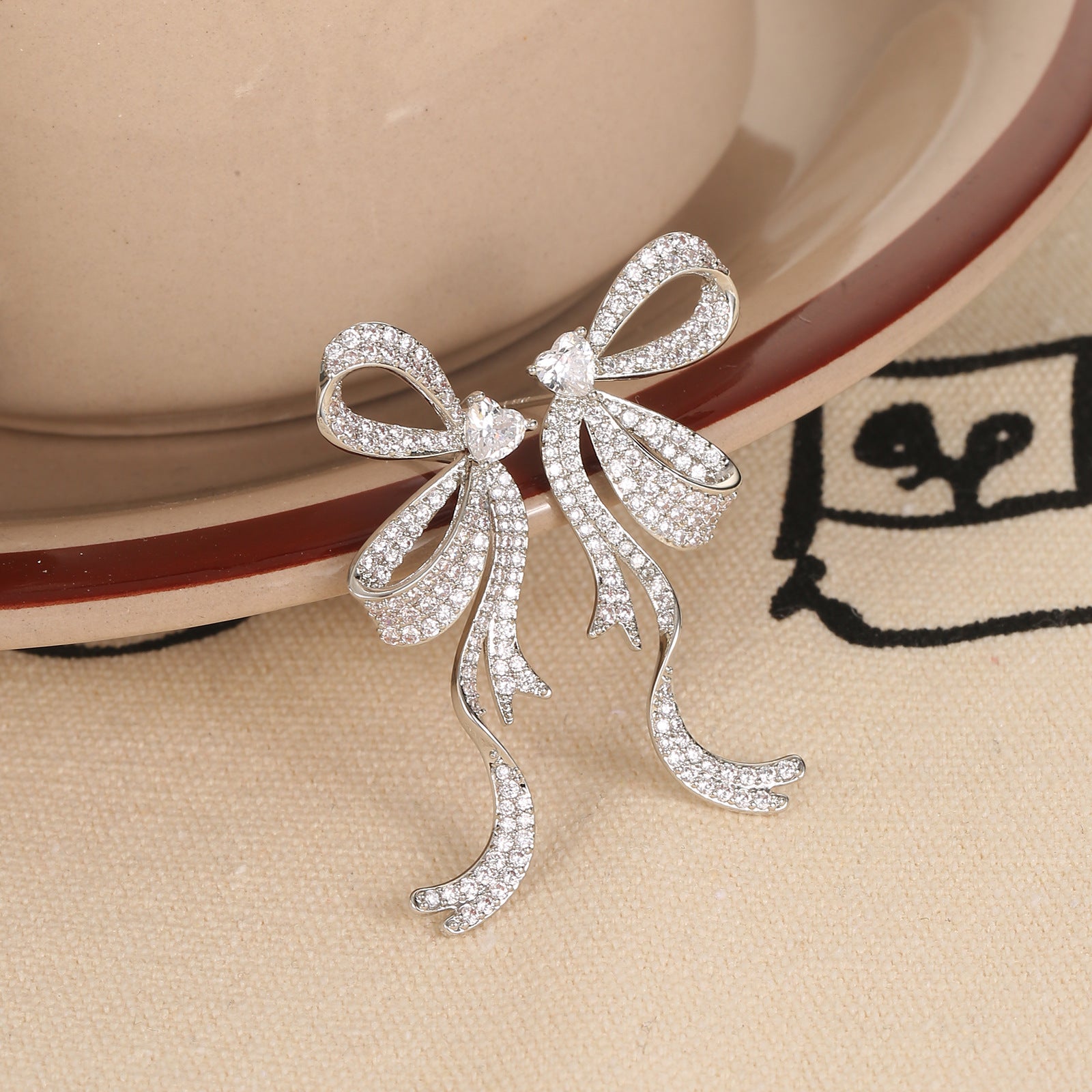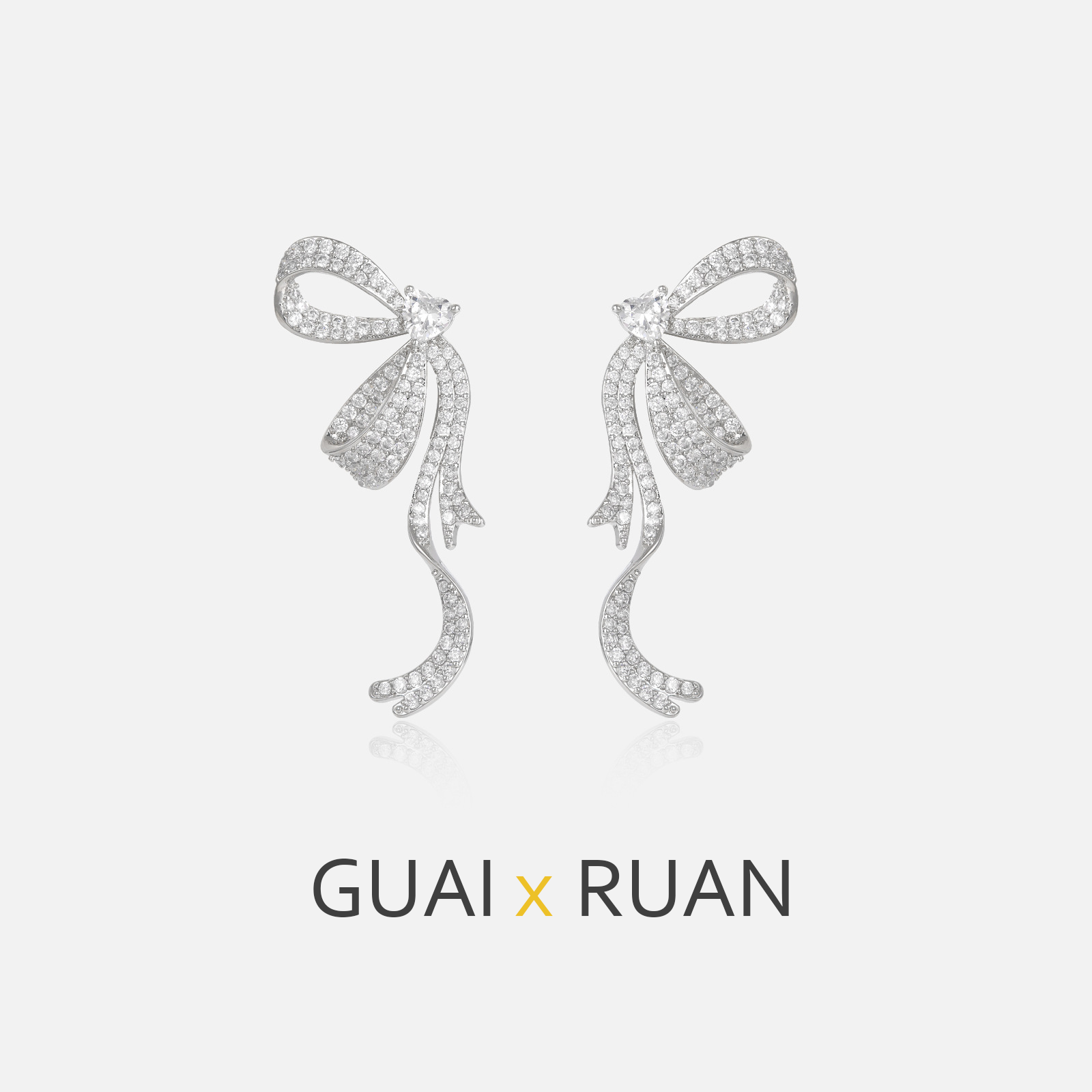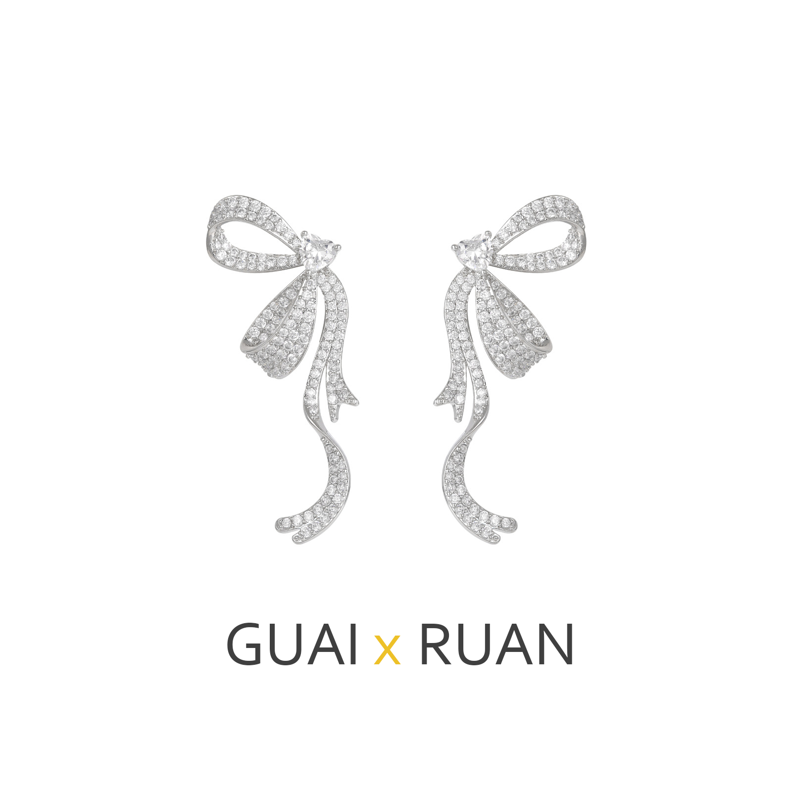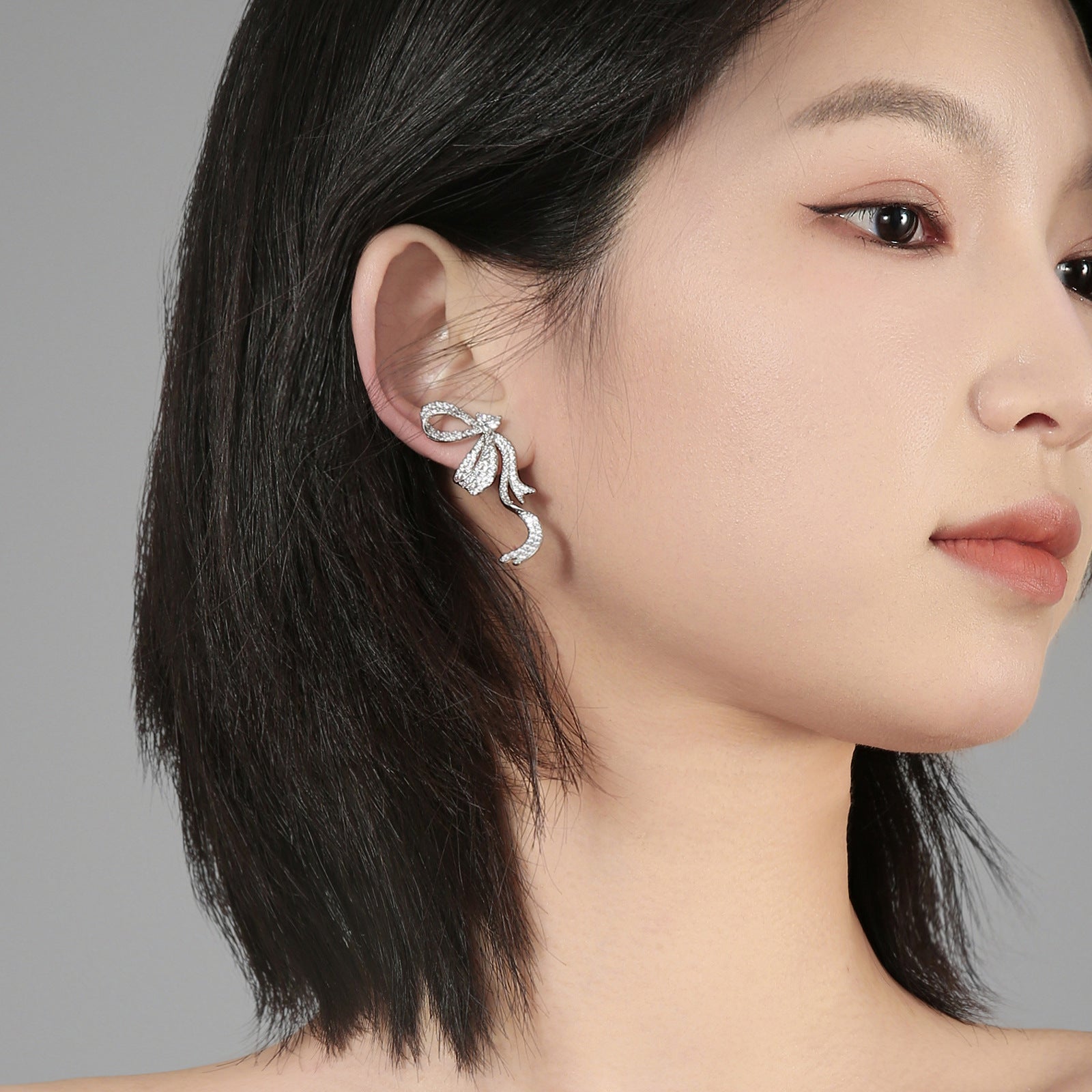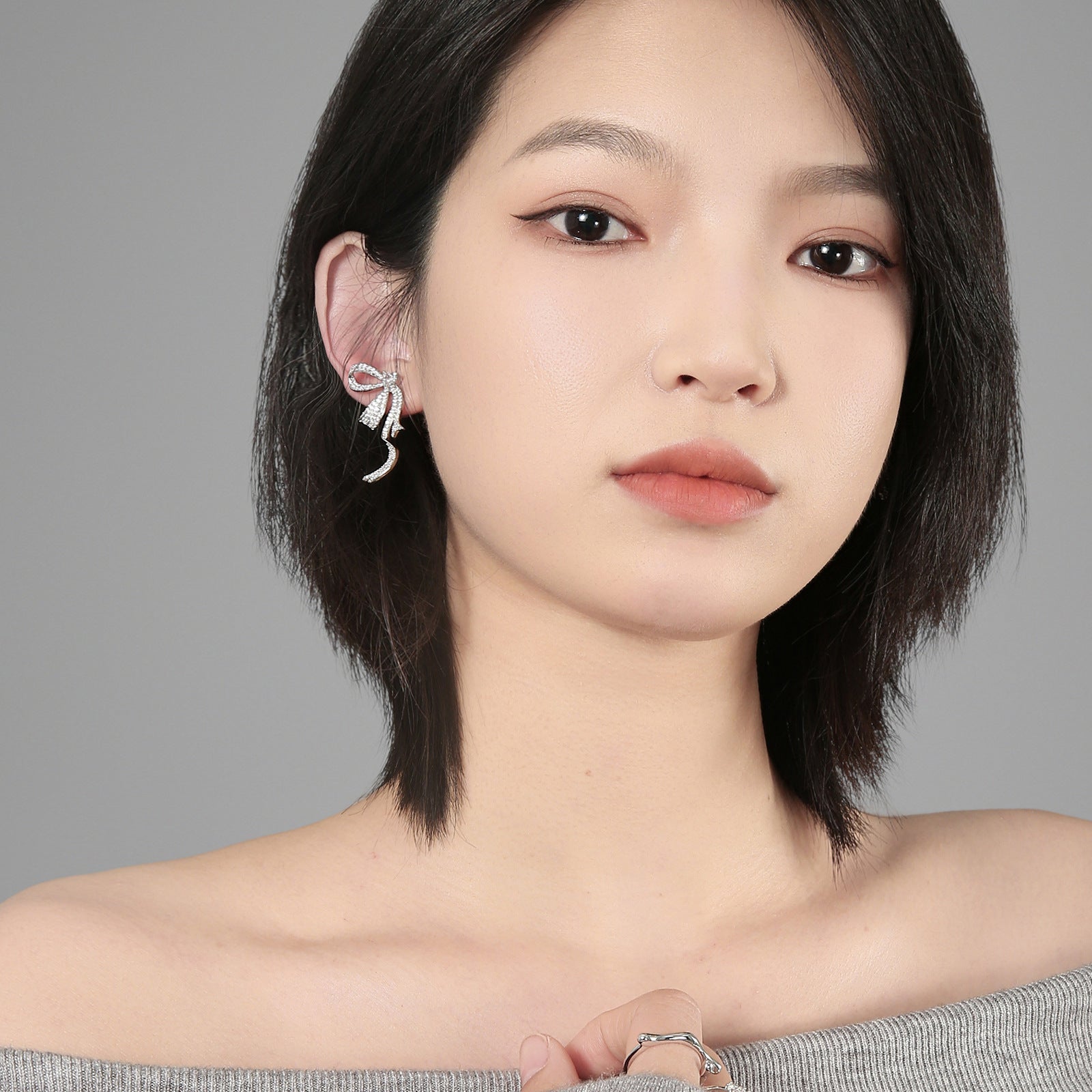 G&R Light Luxury Zircon Symmetrical Half Bow Earrings925Silver