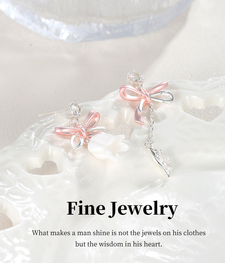 G&R Pink and White Lily of the Valley Tassel Earrings925Silver