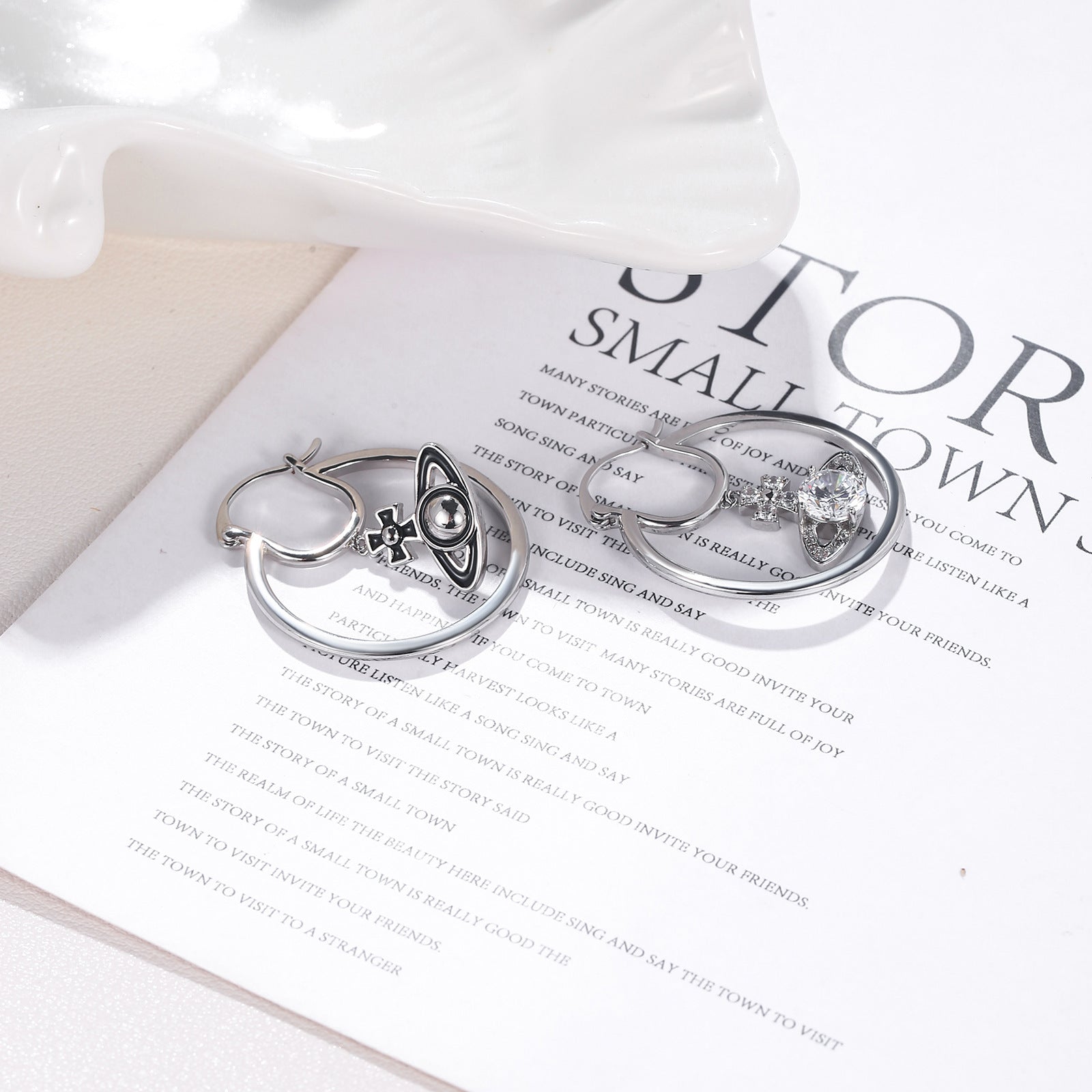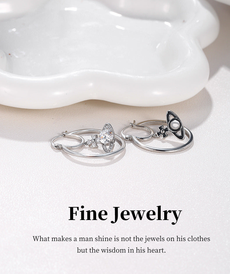 G&R Saturn Black and White Planet Surrounding Geometric Earrings925Silver Earrings