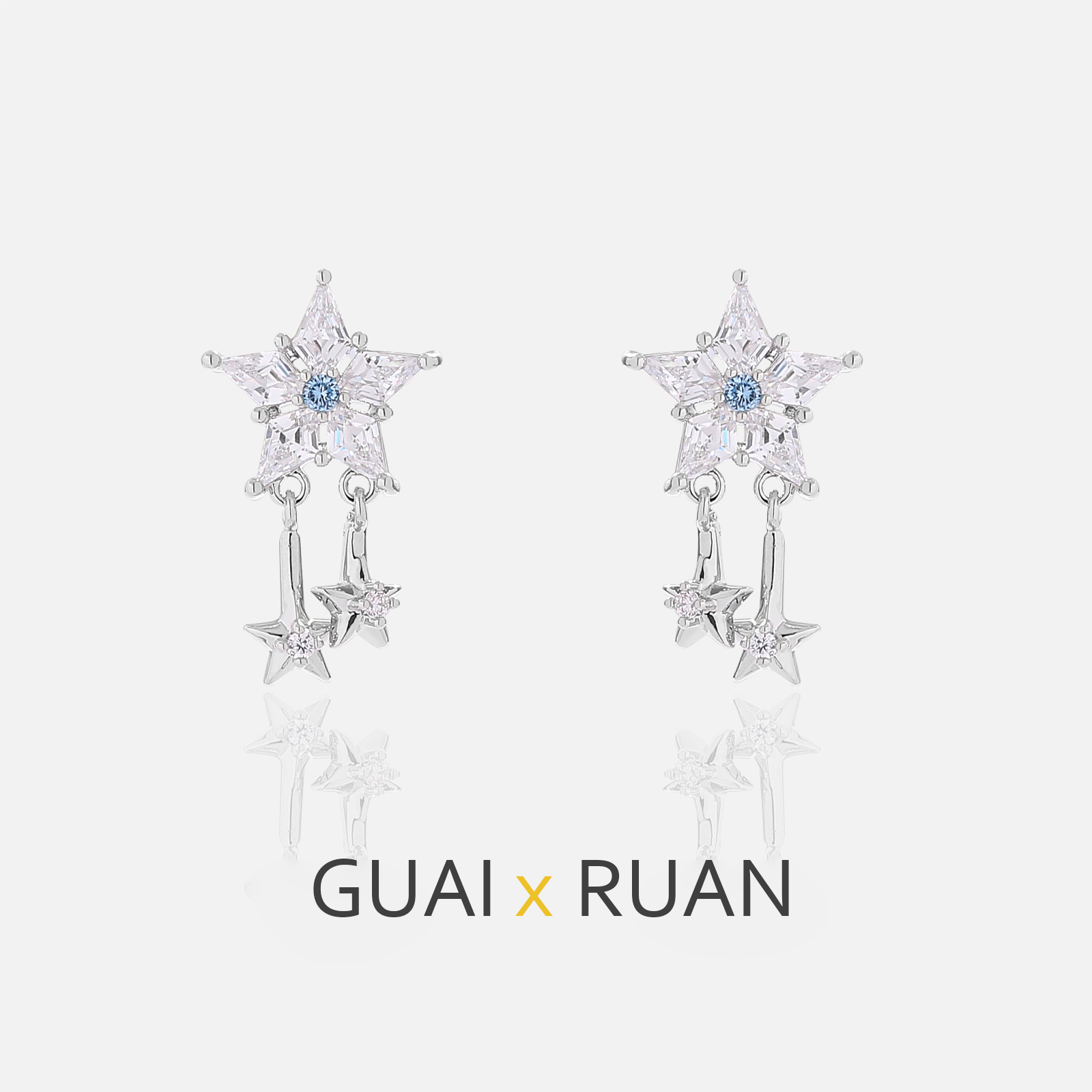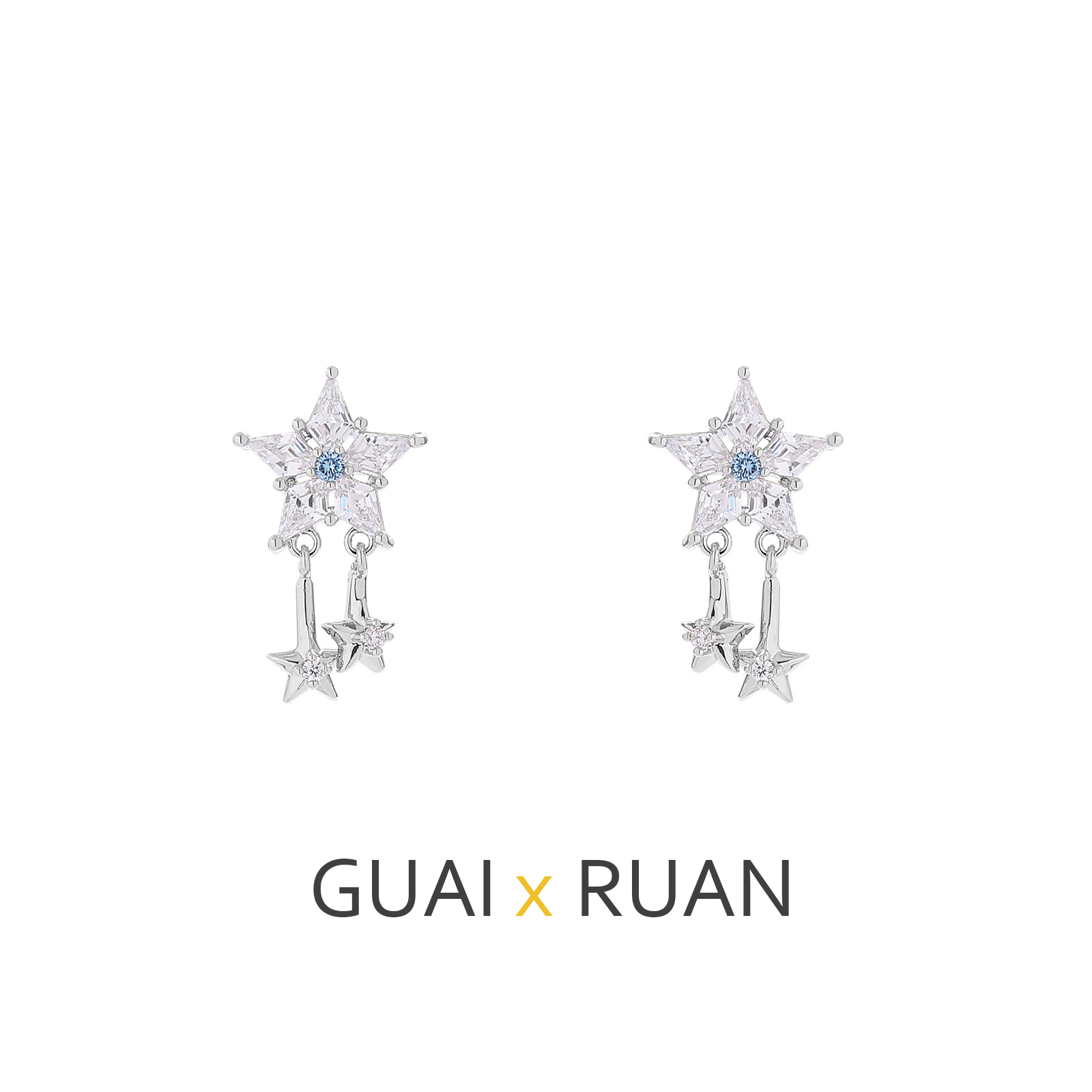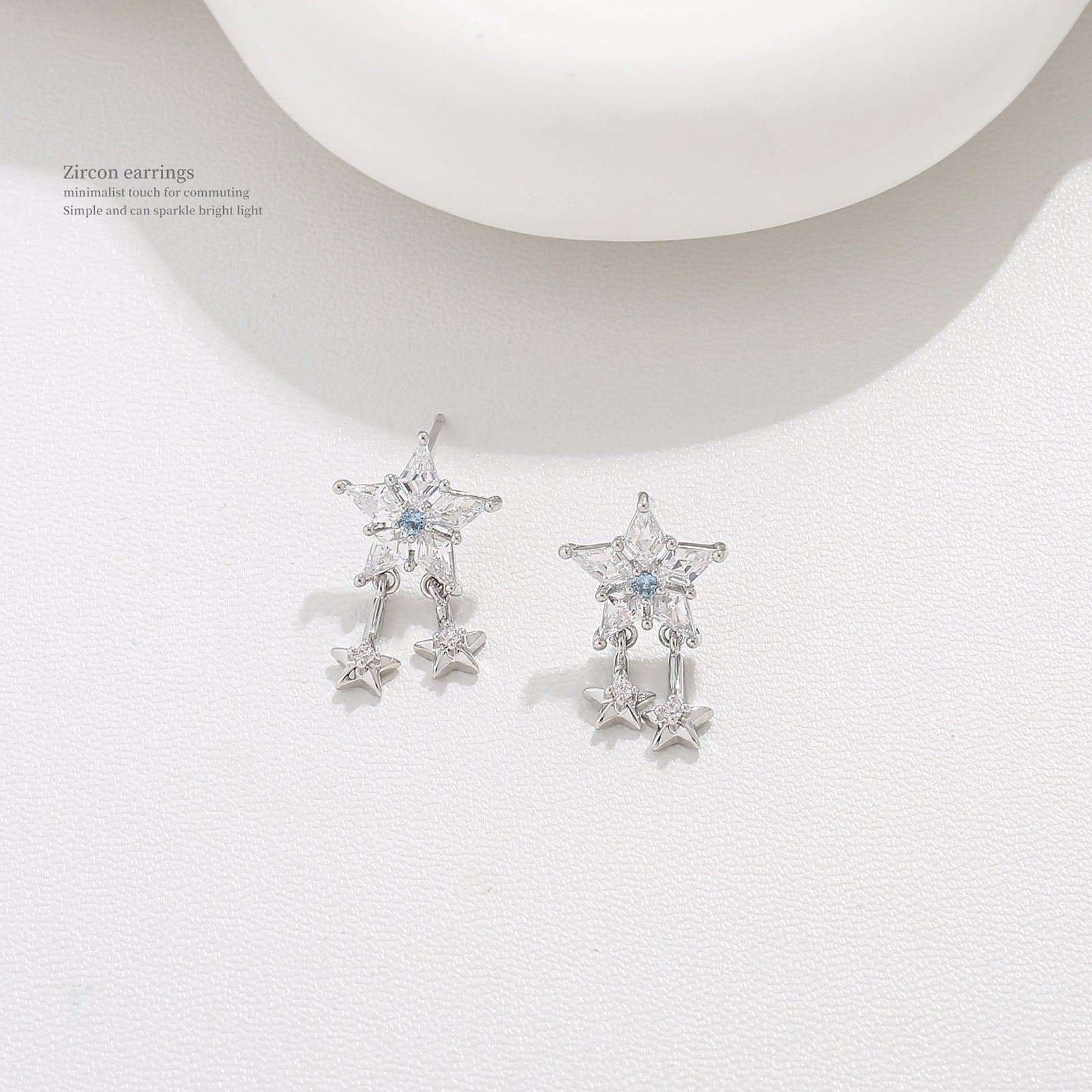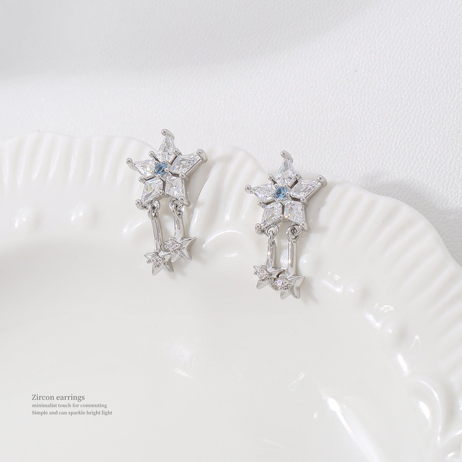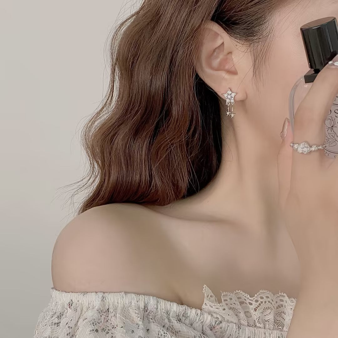 G&R Sparkling Star Earrings925Silver Pointed Crystal Earrings Niche High-End Feel