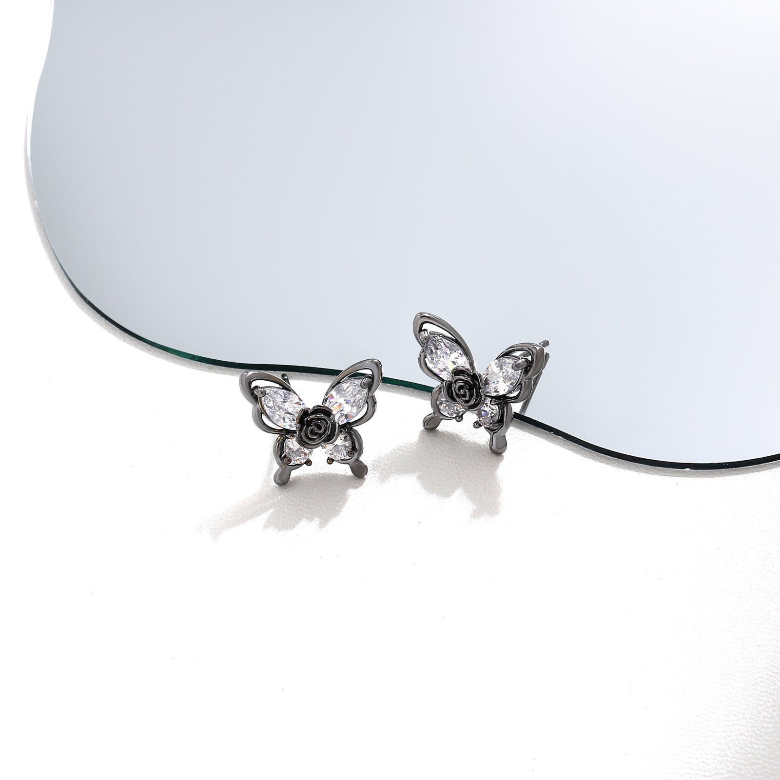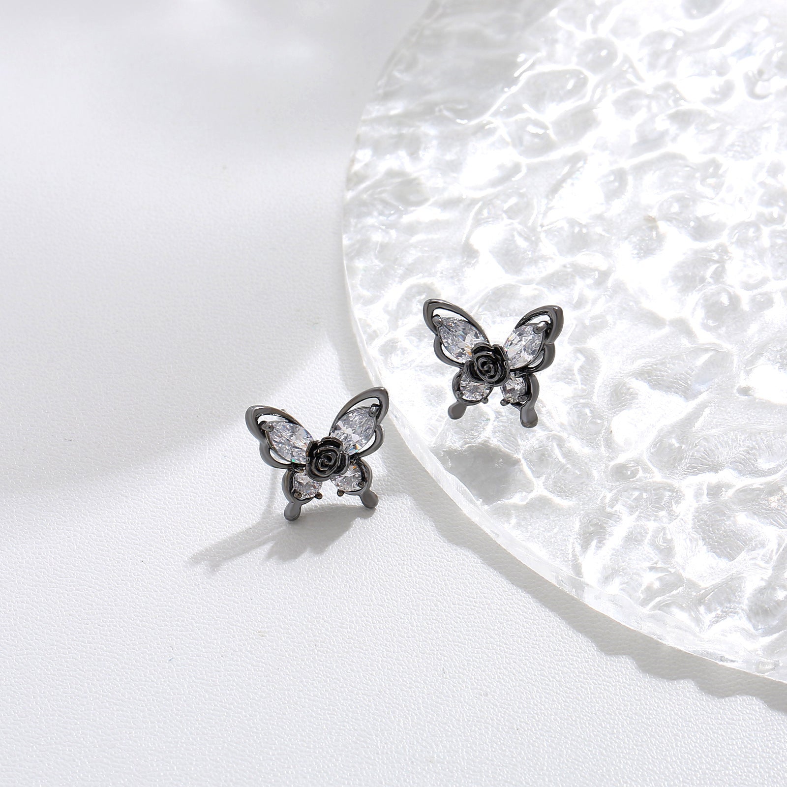 G&R Sweet Cool Style Black Butterfly Zircon925Silver Stud Earrings
