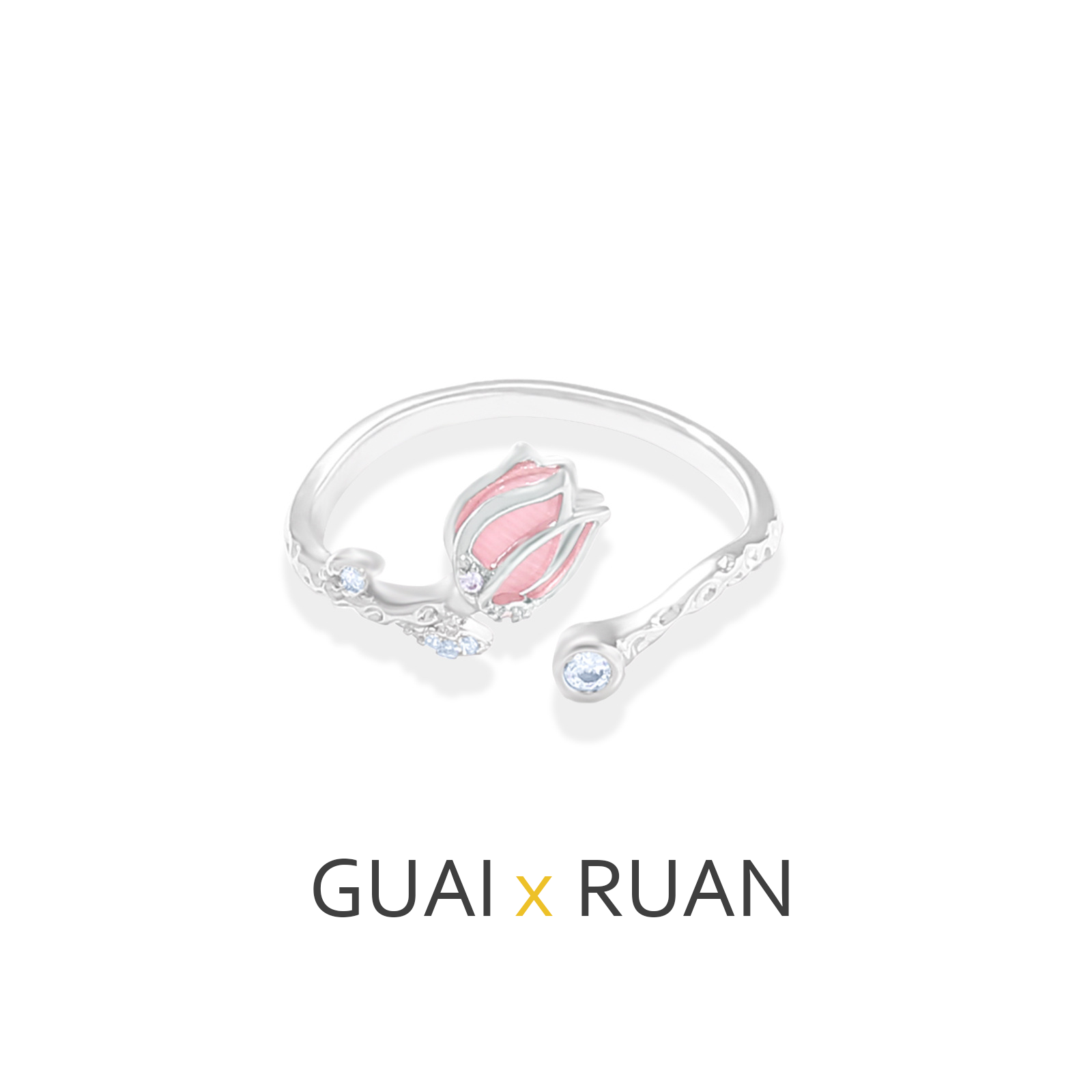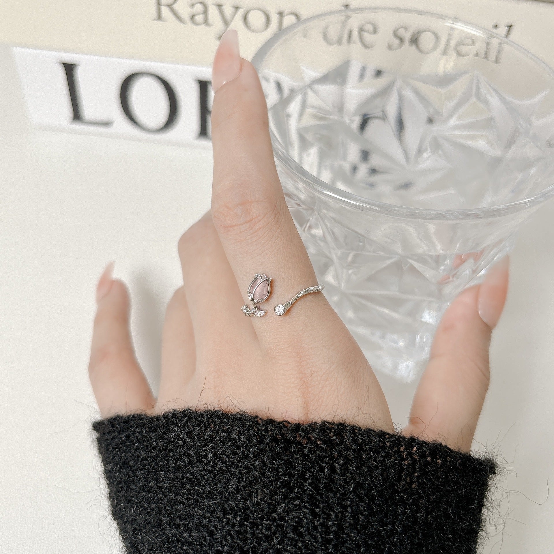 G&R Tulip Pink Cat's Eye Stone Open Ring Elegant925Silver ring